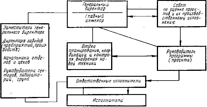 Широкое распространение в последние годы приняло подчинение производственных организаций всесоюзным и республиканским промышленным объединениям. Последние выполняют большой объем работ по руководству непосредственно хозяйственной деятельностью, для чего во многих случаях централизуют ряд функций подготовки производства, обеспечения и обслуживания. В такой ситуации создается целостная структура управления всей подотраслью, в которой аппарат управления производственным объединением или его блоки превращаются .во взаимозависимые звенья общей системы. Это усиливает потребность в создании механизмов программного управления на основе матричных структур.