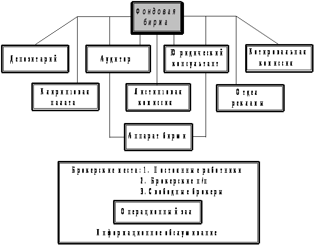 Развитая фондовая система включает следующие структурные элементы, обеспечивающие оборот ценных бумаг: