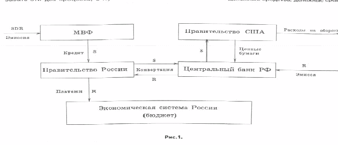 На рис. 1 показана схема движения денежных средств при разработанном МВФ способе эмиссии денег.