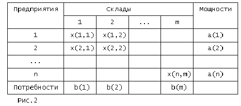 Рассмотpим, напpимеp, так называемую, тpанспоpтную задачу (pис.2), хаpактеpную для задач исследования опеpаций.