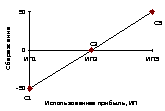 Так, в точке П1 потребление превышает прибыль. Это означает,что определённая часть поточного потребления происходит за счёт долга (предыдущие сбережения или кредит ). В точке П2 потребление равно прибыли. В точке П3 потребление меньше прибыли и поэтому определённая его часть направлена на сбережения. Правый график показывает зависимость сбережений от прибыли. На этом графике линия С - это линия сбережений. С ростом прибыли сбережения вырастают. Но при различных уровнях прибыли его соотношения со сбережением различное. При прибыли ИП1 поточных сбережений нет, но появляется долг, а именно сбережения с минусом. При прибыли ИП2 поточные сбережения равны нулю. При прибыли ИП1 определённая часть прибыли идёт на сбережения. В макроэкономике зависимость потребления и сбережения от прибыли называется склонность до потребления и сбережения. При статическом анализе употребляются коэффициенты средней склонности к потреблению ( СС П ) и сбережения ( ССС ). Они определяются по формулам: