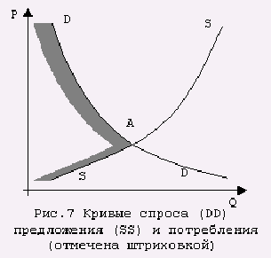Рассуждая формально, приходим к следующему. При заданных S>1> и P>1>, удовлетворяющих условию S>1>=S(P>1>), определяется спрос D>1>, после чего для объема потребления получаем C>1>=min(S>1>,D>1>).