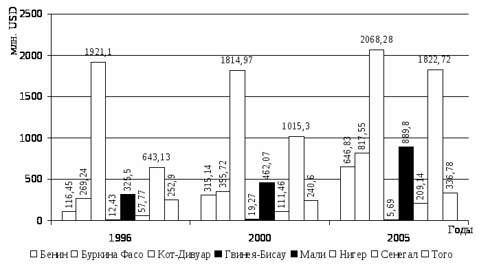 1 Рисунки 2 и 3 составлены автором по/ Banque de France – Rapport zone Franc 1999, ANNEZES A7 – A1 Banque de France – Rapport zone Franc 1999, ANNEZES A6 – A10 – A28 – A31; ВСЕАО Rapport annel 2005 annex I, II.