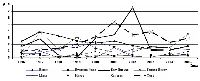 Следует отметить, что в состав ЗАЭВС входят восемь государств: Бенин, Буркина-Фасо, Кот-Д’Ивуар, Гвинея-Бисау, Мали, Нигер, Сенегал и Того. В настоящее время он является наиболее динамично развивающимся объединением на африканском континенте.
