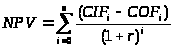 (Вi – Сi) – чистый прирост свободных денежных средств за i-й год;