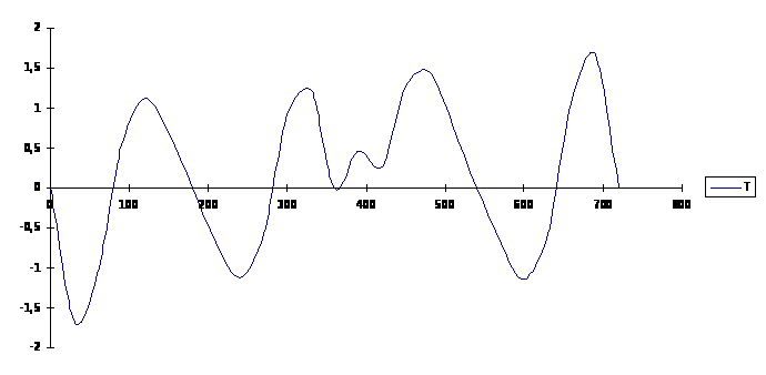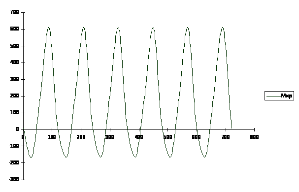 Рис.7. График тангенциальной силы в зависимости от угла поворота кривошипа