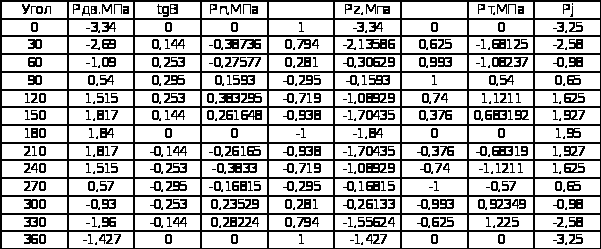 Определение движущей силы , где Р>0> = 0,1 МПа , Р>дв> = Р>r> +P>j> - P>0> , где Р>r> - сила давления газов на поршень , определяется по индикаторной диаграмме теплового расчета . Все значения движущей силы в зависимости от угла поворота приведены в таблице 8. Зная движущую силу определим радиальную , нормальную и тангенциальную силы :