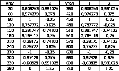 ТАБЛИЦА 6. Ускорение поршня при различных углах поворота кривошипа .