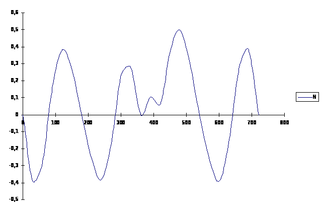 Рис.5 График радиальной силы N в зависимости от угла поворота кривошипа .