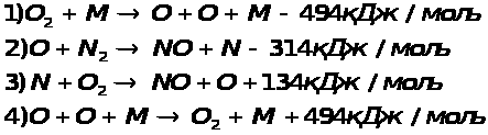 Так как энергия активация этой реакции очень высока, то она предопределяет исключительно сильную зависимость скорости образования оксида азота от температуры.