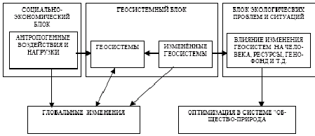 Прогнозирование экологических ситуаций является наиболее сложной в структуре мониторинга (рис. 3). Оно включает три блока, объединенных целевым назначением: социально-экономический, геосистемный и экологических проблем и ситуаций (прогноз влияния изменения природной среды) и экологических проблем и ситуаций (прогноз влияния изменения свойств ландшафтов на условия проживания людей и состояние их здоровья, природно-ресурсный потенциал, генофонд и т.д.). Разработка прогноза каждого из названных блоков является самостоятельной задачей. При системном же подходе они имеют общую цель – суждение о состоянии экологической ситуации в будущем (ее пространственных и временных масштабах и степени остроты [5,8,16].