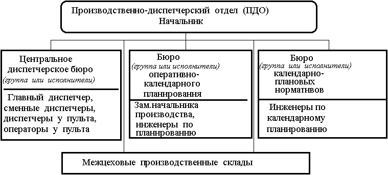 Таким образом, ключевым звеном организации оперативно-производственной деятельности на предприятии выступает производственно-диспетчерский отдел и производственно-диспетчерское бюро. В функции этих отделов входит планирование, организация и контроль за текущей деятельностью цехов.