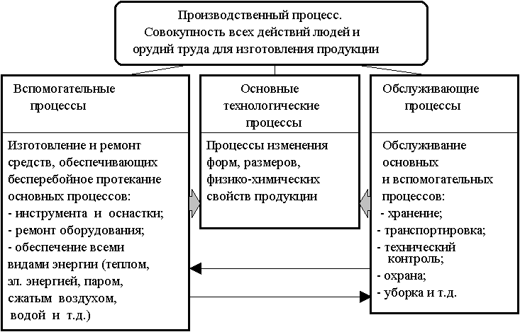 Производственный процесс — это совокупность всех действий людей и орудий труда, необходимых на данном предприятии для изготовления продукции.