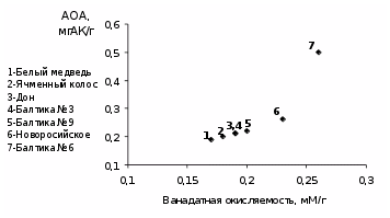 результаты анализа смесей восстановителей органической природы для оценки суммарного характера величины АОА;