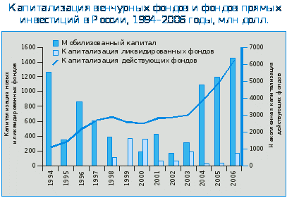 В Европе 2006 год продемонстрировал рост доверия к прямым инвестициям и венчурному капиталу, выразившийся в рекордной сумме мобилизованных фондами средств – 112 млрд.долл. Осуществленные инвестиции также достигли своего максимума, составив сумму 70 млрд. долл.