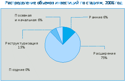 Посмотрим, а что же у нас в стране? Возьмем 2006 год. В России около 100 различных инвестиционных институтов, которые обладают достаточным количеством капитала, это более 6 млрд. долларов, и его можно использовать. Конечно, часть инвестируется в компании на более поздних стадиях, но есть достаточно средств, которые можно использовать в них на ранних стадиях развития.