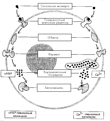 Рис. 2. Главные механизмы образования внутриклеточных мессенджеров