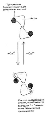 Рис. 7. Схема расположения на актиновом филаменте тропонина и тропомиозина