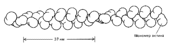 Рис. 13. Организация глобулярных молекул актина в актиновом филаменте