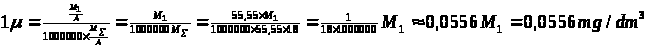 1 млн-1=1μ =([М1]/18) (мг/л)→ 0,0556·[Мпр] (мг/л), (1)
