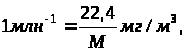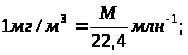 Примечание. Для обозначения концентраций веществ в воздухе наряду с размерностью мг/м3 нередко используется характерной для англо – язычной литературы значение в млн-1 (части на миллион частей воздуха). Переход между этими значениями для нормальных условий (температура 10 – 30 ºС, атмосферное давление) можно производить с достаточной степенью точности по формулам: