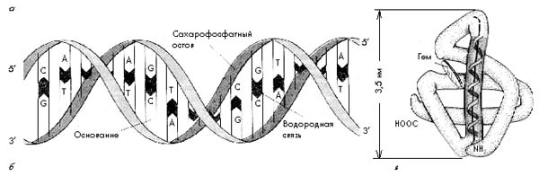 а — полисахарид (разветвленный); б — фрагмент двойной спирали ДНК (полинуклеотид);