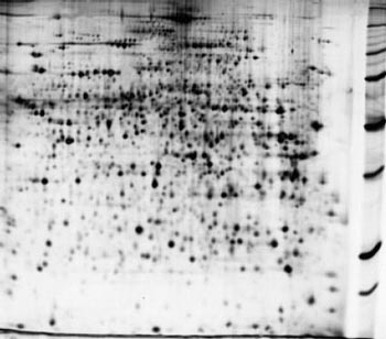 Рис. 3. Пример двумерной электрофореграммы белков из экстракта печени мыши [8]
