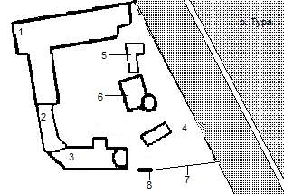 Форма плана монастыря неправильная, в виде прямоугольной трапеции.