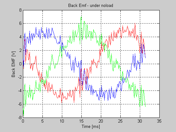 xlabel('Time [ms]'),ylabel('Back EMF [V]')