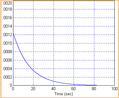 Подставляя в полученное уравнение значения t от 0 до 100 с построим график импульсной переходной характеристики.