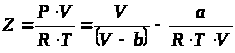a - параметр, учитывающий действие сил притяжения, b - отталкивания. Последний параметр, называемый эффективным молекулярным объемом, согласно теоретическим расчетам Ван-дер-Ваальса должен в четыре раза превышать действительный объем молекул.