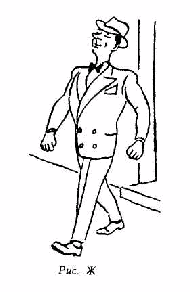 Положение тела на рис. Ж характерно для людей маленького роста, которые стараются казаться повыше. Они как бы надуваются, желая сказать: "А вот и я, вы видите, какая я важная персона!". Эту позу часто принимают руководители низшего звена, любующиеся собой и всеми силами желающие убедить мир в том, как важна их должность.