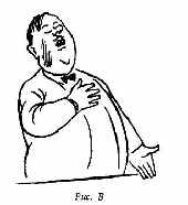Человек на рис. В находится в оборонительной позиции: "Я настаиваю на том, чтобы за мной сохранили это место" или "Нет, спасибо, я ни при каких обстоятельствах не буду изменять свое решение". Это положение тела также выражает явное соответствие между мыслями и словами.