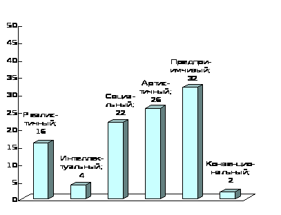 - самореализацию, которая должна носить творческий характер, иметь широкий диапазон областей;