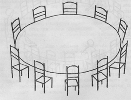 3. А теперь размести за этим столом свою семью. Здесь необходимо предложить ребенку нарисовать свою семью, сидящую за круглым столом, таким же, как в предыдущих картинках.