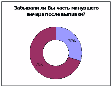 6 человек из 20 опрошенных признались, что забывали часть вечера после принятия спиртного (см. Приложение 2).