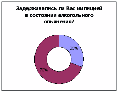 6 человек из 20 опрошенных подтвердили, что их задерживала милиция в состоянии опьянения.