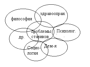 Следует отметить, что все исследования и разработки в области изучения проблем граждан пожилого и престарелого возраста носят междисциплинарный характер. Только при взаимодействии всех областей знания возможно более полное и глубокое изучение проблем пожилых, что отображено на рисунке 1.