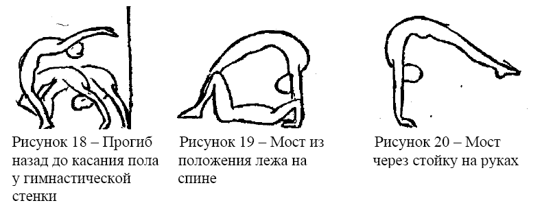 б) стоя спиной к гимнастической стенке на расстоянии шага, перебирая руками, прогнуться назад до касания пола руками (рисунок 18).