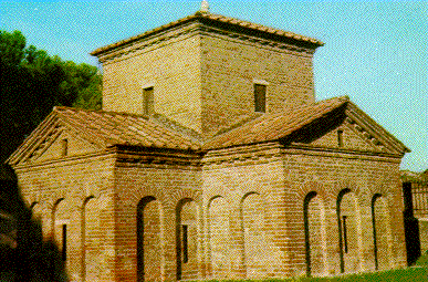 Мавзолей Галлы Плацидии (первая половина V века) получил свое название в честь безвременно умершей дочери императора Феодосия Великого. На самом деле он не является мавзолеем, поскольку Галла Плацидия похоронена в Риме. Видимо, это была молельня, посвященная особо почитаемому в роду мученику Лаврентию - по крайней мере, именно его изображение находится прямо напротив входа.
