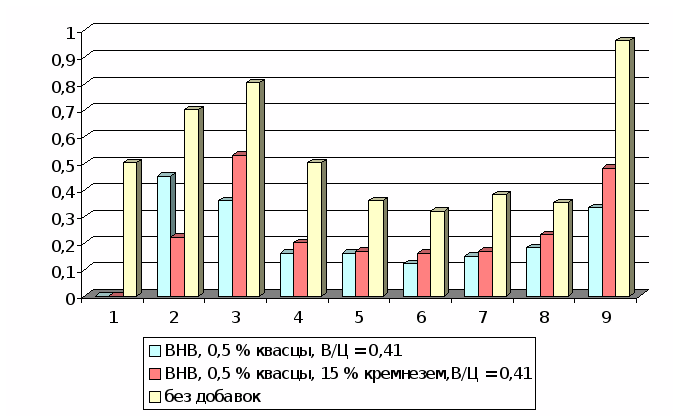 ВНВ, 15% SiO2, 0,5% КВАСЦЫ, В/Ц = 0,41 |