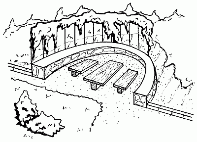 При создании подпорной стенки материалы крепятся с помощью цементного раствора. Метод сухой кладки применяется для создания каменных подпорных стенок – камни плотно укладываются друг к другу, а между ними могут высаживаться многолетние растения. При использовании такого метода подпорная стенка не должна быть выше 70 см. При укладке на цемент между плитами можно оставлять ниши, в которых впоследствии высаживают ампельные растения (настурцию, горошек, петунии и пр.). Более устойчивыми к высокой влажности являются подпорные стенки из сланца, песчаника, плиточного известняка, гранита или гнейса (рис.1)