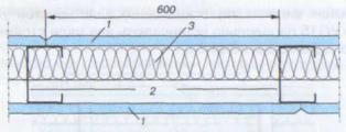 1 - лист гіпсокартона; 2 - металевий каркас; З - звукоізоляційний матеріал.