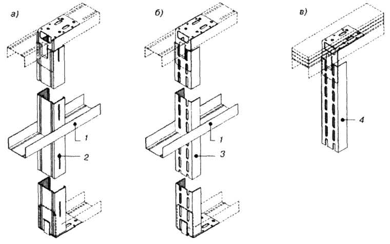 металеві стояки з профілю (CW), які з'єднуються з напрямними профілями і утворюють разом з ними єдиний каркас;