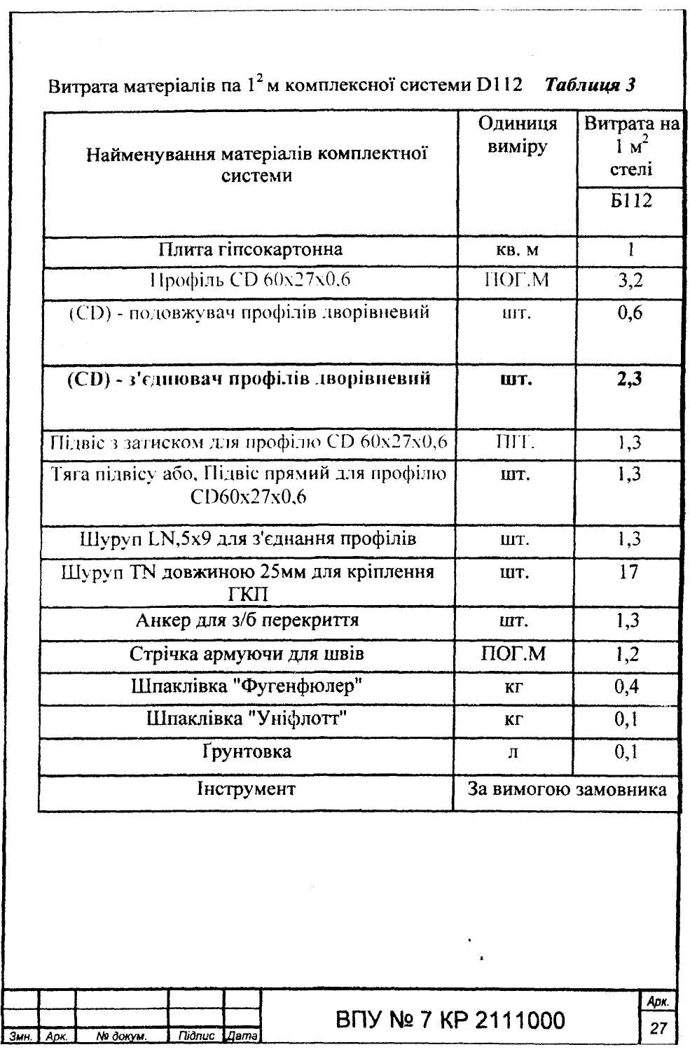 Таблиця 2. Витрата матеріалів на і м2 стелі комплектних систем підвісних стель антивібраційних підвісів (довжина від 12 до 100 см).