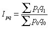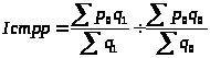 Индекс стоимости продукции, или товарооборота (I>pq> ), представляет собой отношение стоимости продукции текущего периода (Σp>1>q>1> ) к стоимости продукции в базисный период (Σp>0>q>0> ) и определяется по формуле: