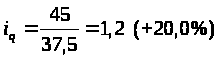 Например, как и в случае с индексом физического объема, если цена товара А в текущем периоде составляла 45 руб., а в базисном – 37,5 руб., то индивидуальный индекс цены будет равен: