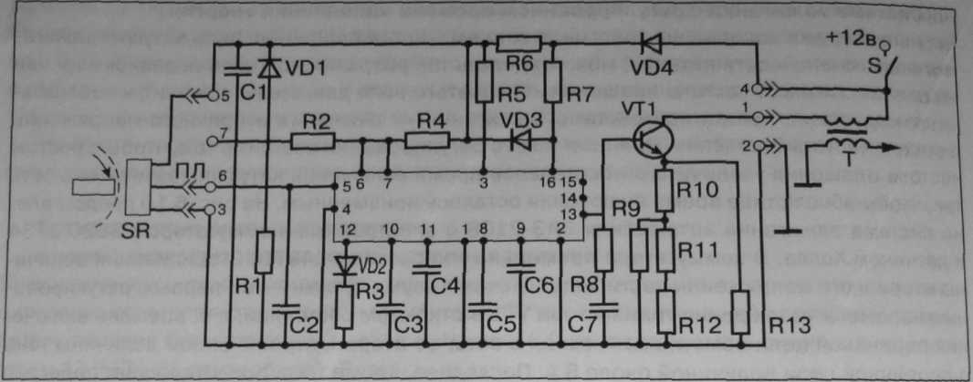 Схема насыщена элементами защиты от всплесков напряжения и включения обратной полярности питания. Регулировка угла опережения зажигания осуществляется традиционными способами, т. е. центробежным и вакуумным регуляторами.