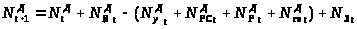В найбільш простому вигляді формування парку літаків і двигунів описується наступними балансовими рекурентними співвідношеннями.