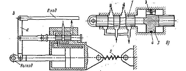 а – гидроусилитель с упругим звеном;